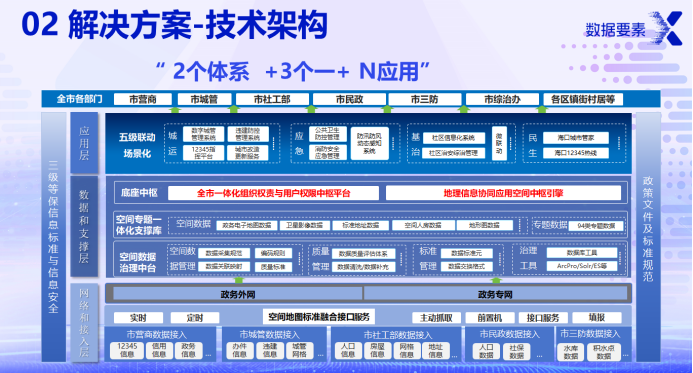数据底座是体系运行的基础,通过“一张网”解决数据传输问题,“一张图”实现数据资源整合,“一个平台”统筹权限管理,三者相互支撑形成闭环。
