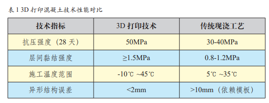 3D 打印混凝土技术相较于传统现浇工艺,具有显著的技术优势。