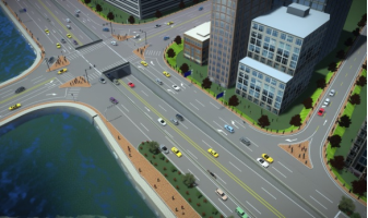 设计人员可将总装模型导入 LumenRT 中进行模型渲染,进行道路景观设计。LumenRT 可输出高质量效果图(见图 7、图 8)或以车辆行驶为视角的动态三维漫游视频,以用于项目汇报或投标,LumenRT 也可输出 VR 渲染文件以支持 VR-3D 沉浸式体验。