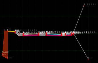 OpenRoads Designer 软件在进行道路横断面设计时引入廊道的概念。设计阶段,道路专业需要大量时间进行道路模板库的建立,模板库中包括路面结构层、挡土墙、路缘石、边沟、排水沟挡块等构件。设计人员首先根据道路横断面宽度、路面结构、边坡坡率、防护形式等不同条件,在模板库中选择相关构件元素进行横断面模板的设计(如图 1 所示),而后沿道路中线进行横断面廊道的添加 ( 如图 2 所示), 软件会根据设计边坡坡率与地形模型相交进行自动放坡。