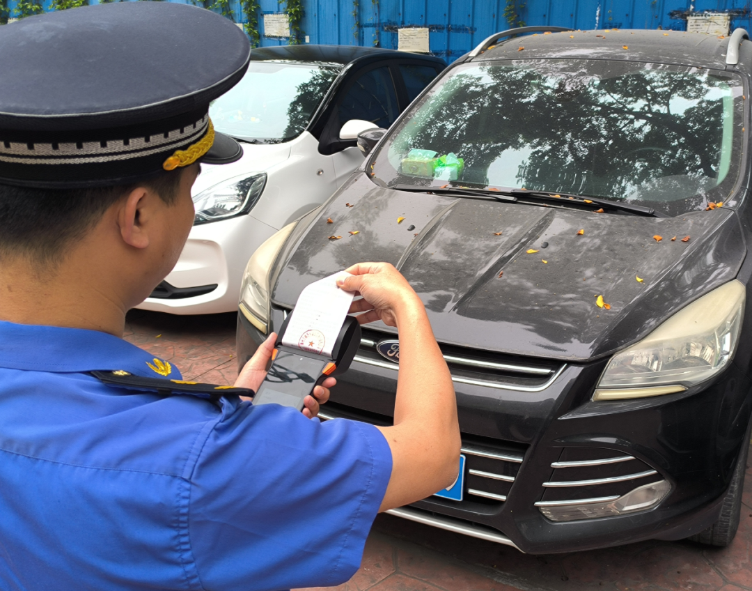 图 4 执法人员使用移动执法终端系统查处违法停车行为