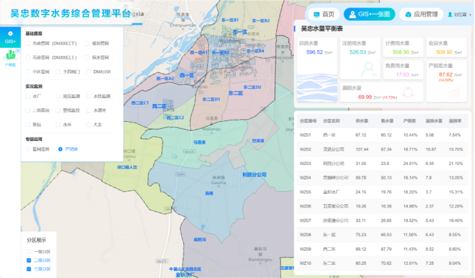 吴忠市“智慧水务”平台(以下简称“智慧水务平台”),建成集生产运营、营销服务以及工程建设信息化为一体的智慧水务运行平台,实现“水源地”到“水龙头”的水质、水压、流量的实时监控,以及生产经营数据的精准分析,有效提升了服务效率和用户满意度。