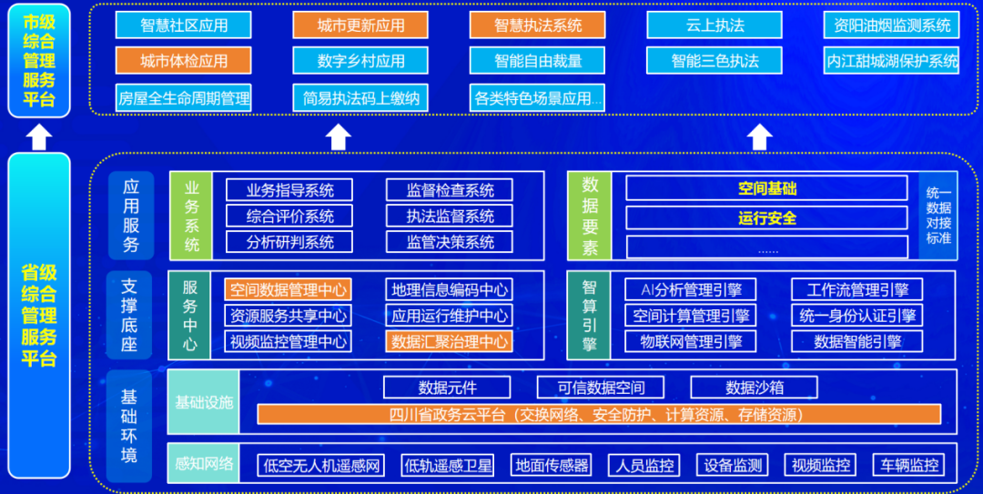为贯彻习近平总书记关于提高城市科学化、精细化、智能化治理水平的重要指示,落实中央城市工作会议精神,四川省住房和城乡建设厅按照住房和城乡建设部《城市运行管理服务平台建设指南(试行)》《城市运行管理服务平台技术标准》等系列规范要求,在全国率先建成省级城市运行管理服务平台(以下简称“平台”),通过一体统筹与数据赋能,推动城市治理向数字化、智能化转型。