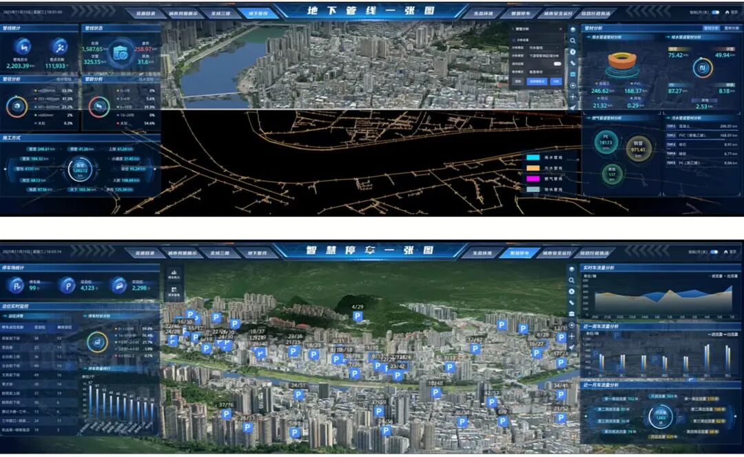 巴中市在城市治理数据场景应用方面成效显著,完成建成区 130 平方公里 CIM3 模 型、2 平方公里 CIM4模型、2203 公里地下管线模型建设。通过回流省级、汇聚市级各部门 9.28 亿条数据,构建了完整的城市数字底板。基于 CIM 和运管服平台开发了 24 个应用场景,其中“CIM+ 全域综合展示”集成规划、建设、管理全流程信息,实现城市运行“一图统揽”;“CIM+ 生态环境”对接 126 个水质、空气质量、扬尘监测点位,实现环境污染溯源分析 ;“运管服 + 智慧停车”整合全市 2.1 万个公共停车位信息,提供车位查询、预约、导航一站式服务。CIM+ 运管服双平台显著提升了城市治理效能,如扬尘污染处置时间从 24 小时缩短至 4 小时,公共停车场利用率提高 35%,市民找车位时间平均减少 8 分钟。